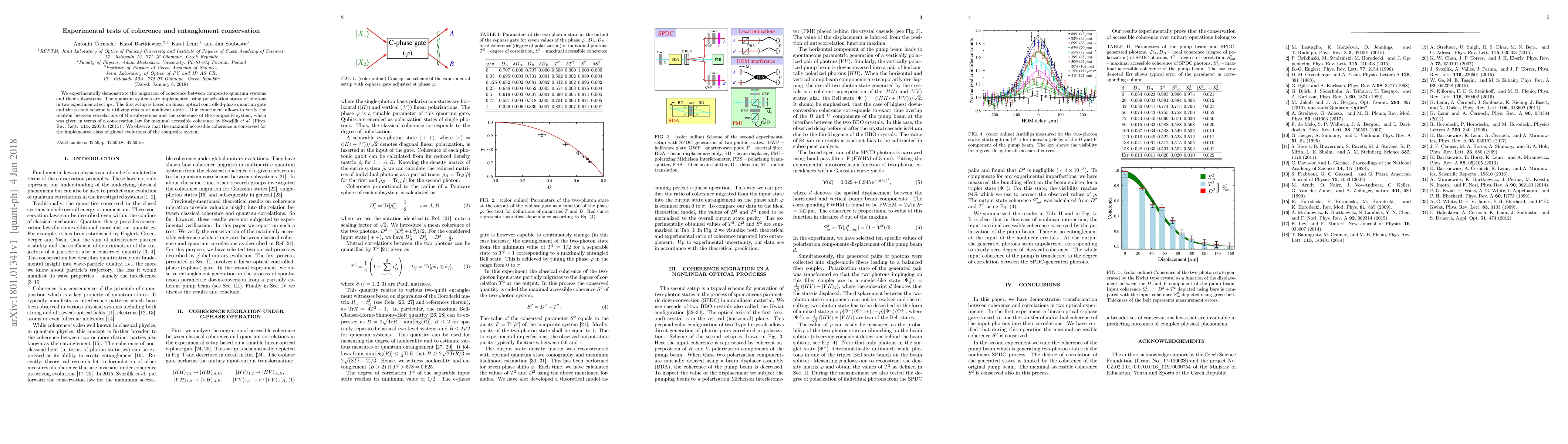 This paper experimentally verifies the conservation of coherence in composite quantum systems using photon polarization states, demonstrating coherence migration between systems and subsystems. The study supports a conservation law for maximal accessible coherence, confirming its validity for a class of global evolutions.