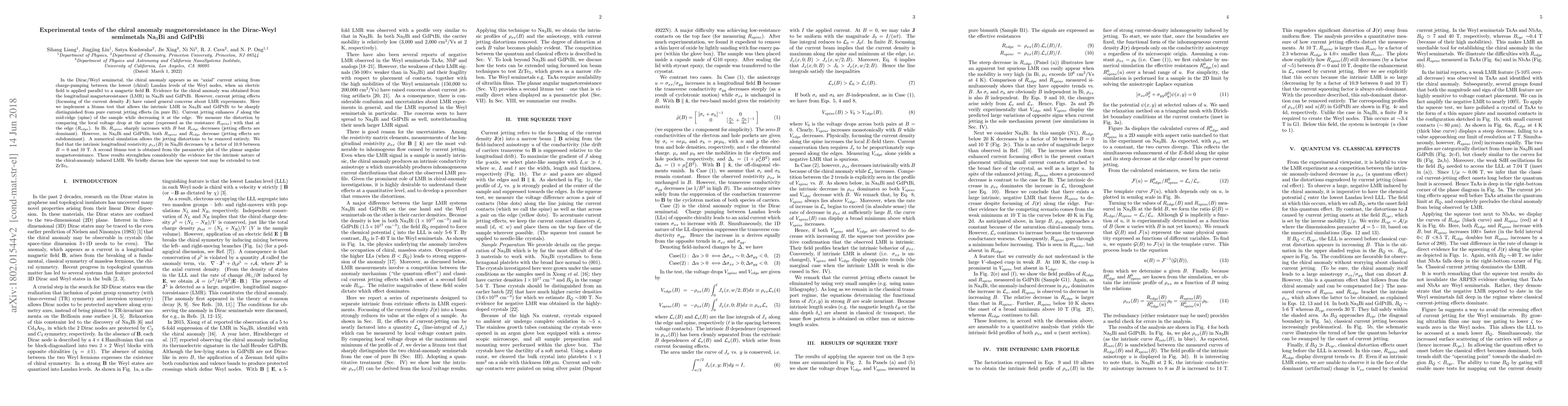In the Dirac/Weyl semimetal, the chiral anomaly appears as an "axial" current arising from charge-pumping between the lowest (chiral) Landau levels of the Weyl nodes, when an electric field is applied parallel to a magnetic field $\bf B$. Evidence for the chiral anomaly was obtained from the longitudinal magnetoresistance (LMR) in Na$_3$Bi and GdPtBi. However, current jetting effects (focussing of the current density $\bf J$) have raised general concerns about LMR experiments. Here we implement a litmus test that allows the intrinsic LMR in Na$_3$Bi and GdPtBi to be sharply distinguished from pure current jetting effects (in pure Bi). Current jetting enhances $J$ along the mid-ridge (spine) of the sample while decreasing it at the edge. We measure the distortion by comparing the local voltage drop at the spine (expressed as the resistance $R_{spine}$) with that at the edge ($R_{edge}$). In Bi, $R_{spine}$ sharply increases with $B$ but $R_{edge}$ decreases (jetting effects are dominant). However, in Na$_3$Bi and GdPtBi, both $R_{spine}$ and $R_{edge}$ decrease (jetting effects are subdominant). A numerical simulation allows the jetting distortions to be removed entirely. We find that the intrinsic longitudinal resistivity $\rho_{xx}(B)$ in Na$_3$Bi decreases by a factor of 10.9 between $B$ = 0 and 10 T. A second litmus test is obtained from the parametric plot of the planar angular magnetoresistance. These results strenghthen considerably the evidence for the intrinsic nature of the chiral-anomaly induced LMR. We briefly discuss how the squeeze test may be extended to test ZrTe$_5$.