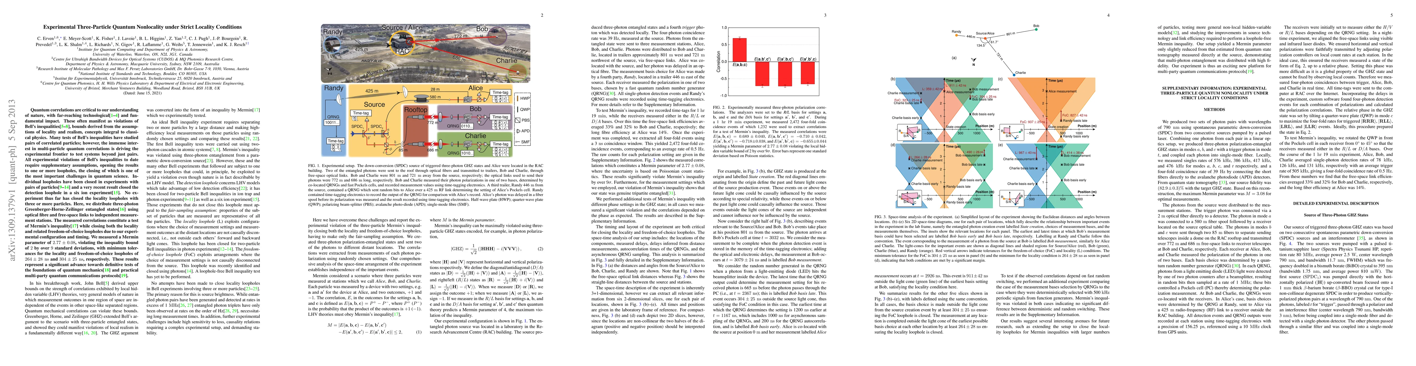 This paper reports an experimental test of quantum nonlocality using three-photon Greenberger-Horne-Zeilinger entangled states, closing both locality and freedom-of-choice loopholes. The results show a significant violation of Mermin's inequality, advancing the definitive test of quantum mechanics foundations and multi-party quantum communication protocols.