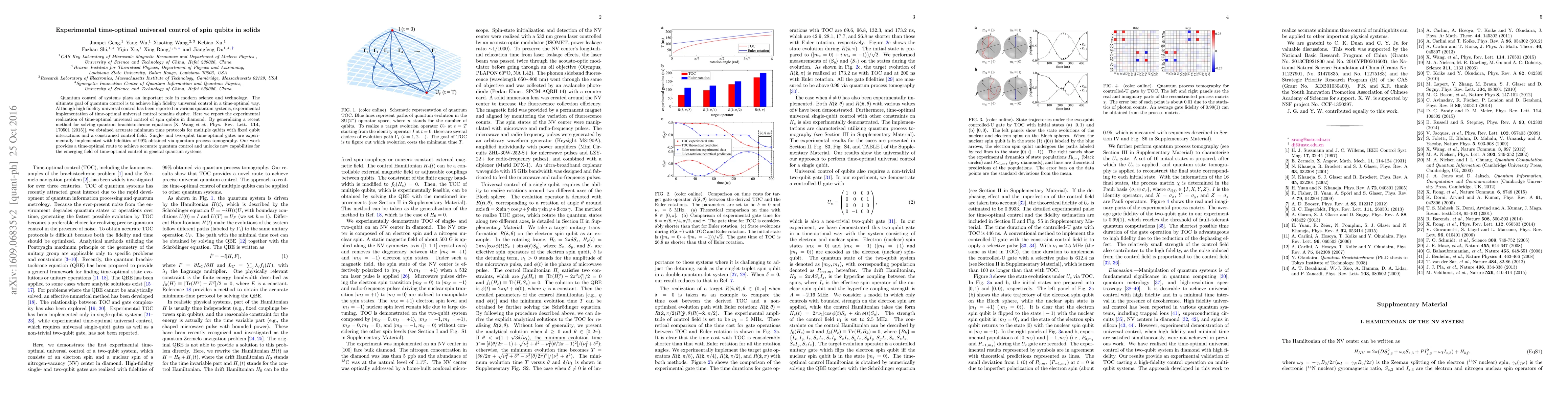 This paper reports the experimental realization of time-optimal universal control of spin qubits in diamond, achieving single- and two-qubit gates with 99% fidelity. The study generalizes a method for solving quantum brachistochrone equations to develop minimum time protocols for multiple qubits.