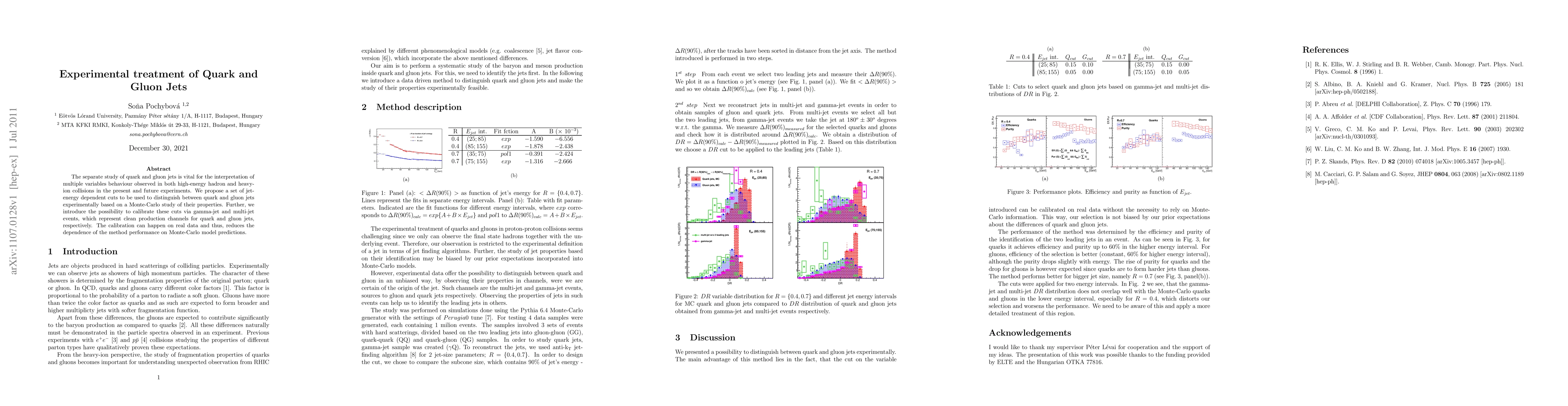 This research proposes jet-energy dependent cuts to distinguish quark and gluon jets in high-energy collisions, validated via Monte-Carlo simulations. The method can be calibrated using gamma-jet and multi-jet events, reducing reliance on Monte-Carlo predictions and improving experimental interpretation.