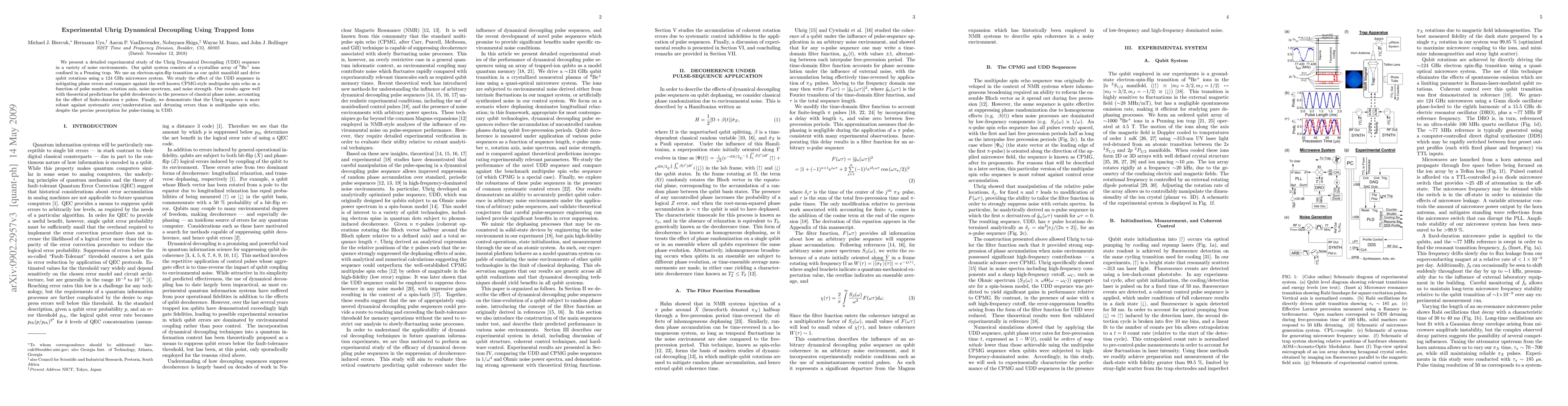This paper experimentally investigates the Uhrig Dynamical Decoupling (UDD) sequence in trapped beryllium ions, demonstrating its effectiveness in mitigating phase errors compared to CPMG-style multipulse spin echo. The study finds UDD to be more robust against systematic errors despite precise pulse-timing requirements.