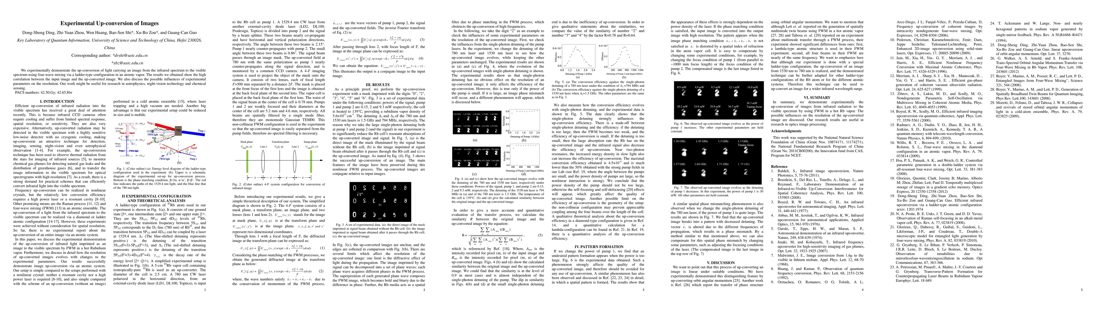 We experimentally demonstrate the up-conversion of light carrying an image from the infrared spectrum to the visible spectrum using four-wave mixing via a ladder-type configuration in an atomic vapor. The results we obtained show the high correlation between the input image and the up-converted image. We also discuss the possible influences of experimental parameters on the resolution. Our work might be useful for research in astrophysics, night-vision technology, and chemical sensing.