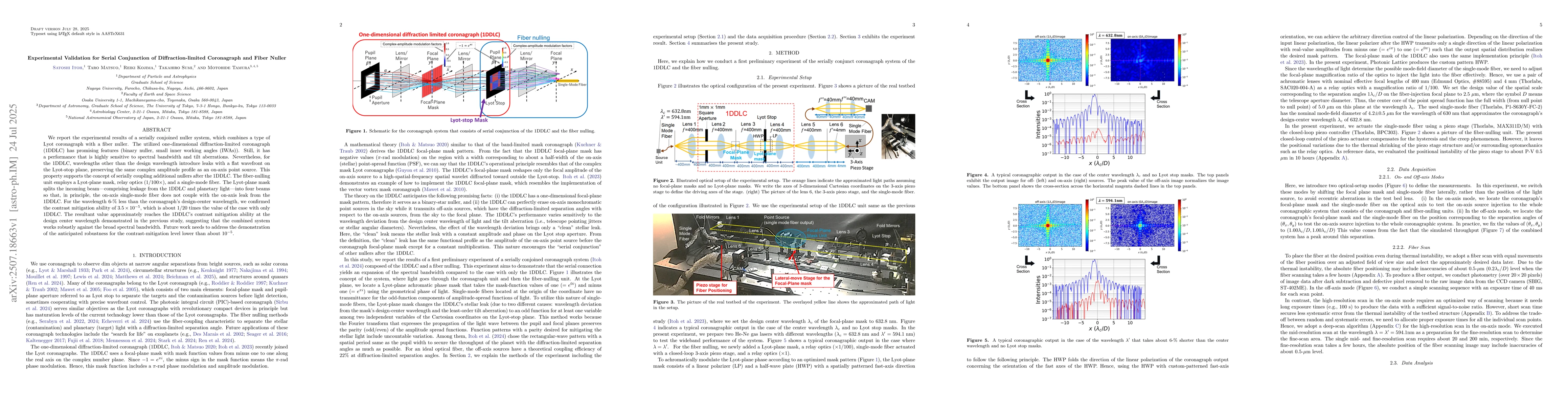 The paper presents experimental validation of a serially conjoined coronagraph and fiber nuller system, demonstrating contrast mitigation of 3.5 x 10^-5 for wavelengths 6% off-design. This robustness against spectral bandwidth suggests potential for future low-contrast imaging applications.
