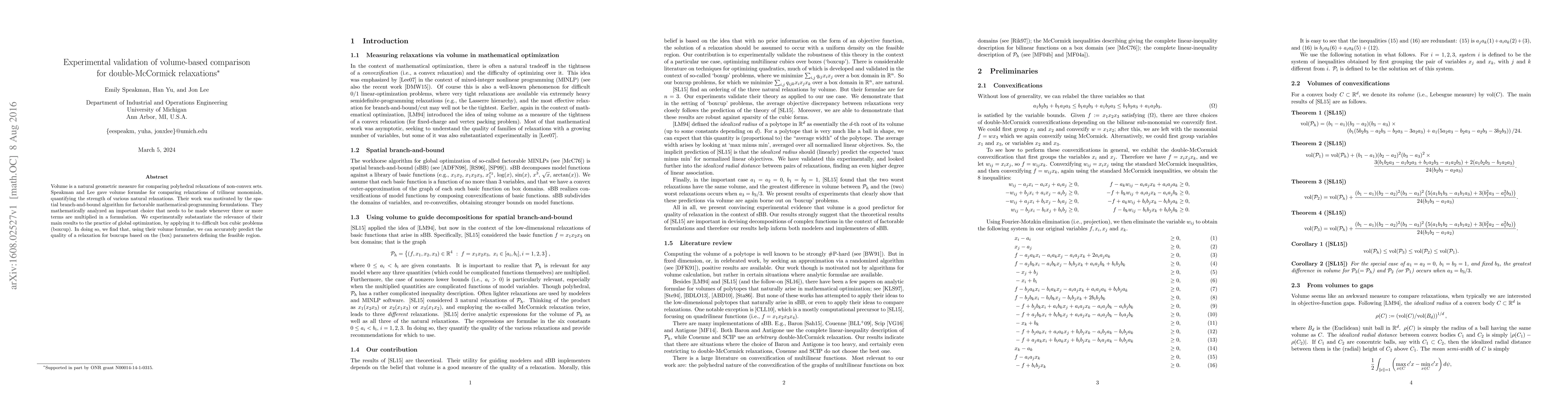 Volume is a natural geometric measure for comparing polyhedral relaxations of non-convex sets. Speakman and Lee gave volume formulae for comparing relaxations of trilinear monomials, quantifying the strength of various natural relaxations. Their work was motivated by the spatial branch-and-bound algorithm for factorable mathematical-programming formulations. They mathematically analyzed an important choice that needs to be made whenever three or more terms are multiplied in a formulation. We experimentally substantiate the relevance of their main results to the practice of global optimization, by applying it to difficult box cubic problems (boxcup). In doing so, we find that, using their volume formulae, we can accurately predict the quality of a relaxation for boxcups based on the (box) parameters defining the feasible region.