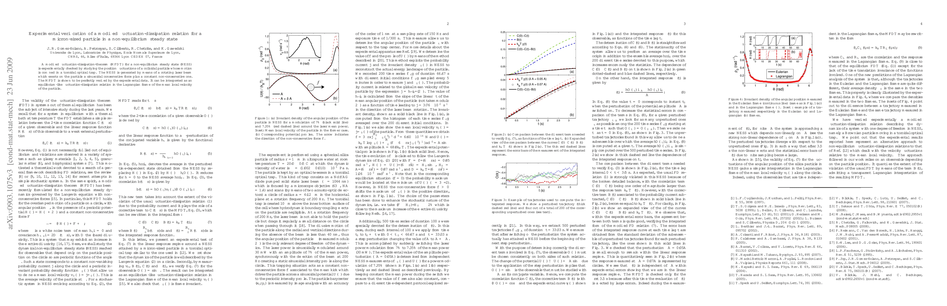 This paper experimentally verifies a modified fluctuation-dissipation theorem for a micron-sized particle in a non-equilibrium steady state, confirming the relation through the study of position fluctuations in a toroidal optical trap driven by a rotating laser beam. The results support the theorem as an equilibrium-like relation in the particle's mean local velocity.