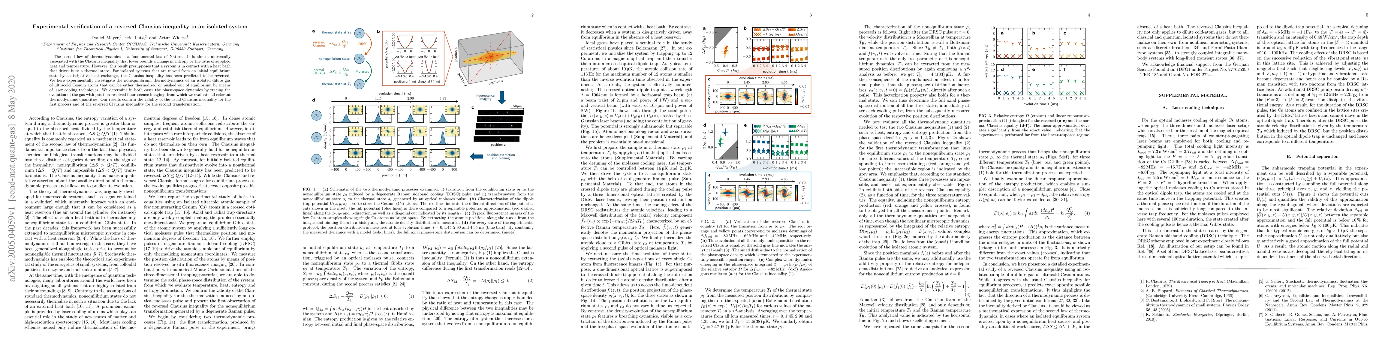 This paper experimentally verifies a reversed Clausius inequality in an isolated system of ultracold Cesium atoms, confirming the usual Clausius inequality during thermalization and the reversed inequality during nonequilibrium transformations driven by laser cooling.