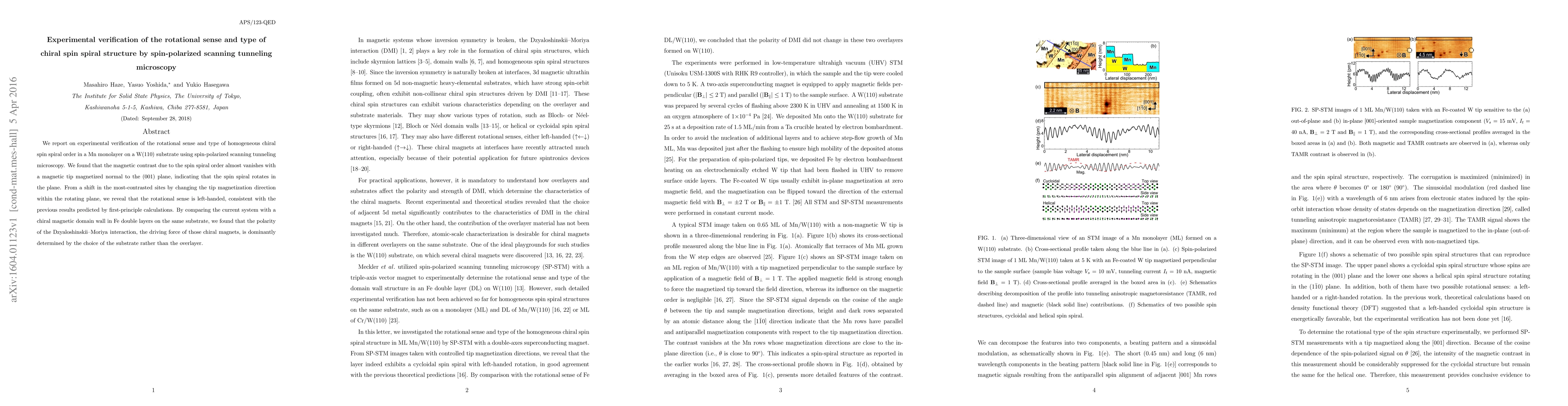 Researchers used spin-polarized scanning tunneling microscopy to confirm a left-handed chiral spin spiral structure in a Mn monolayer on W(110) substrate, shedding light on the driving forces behind its formation.