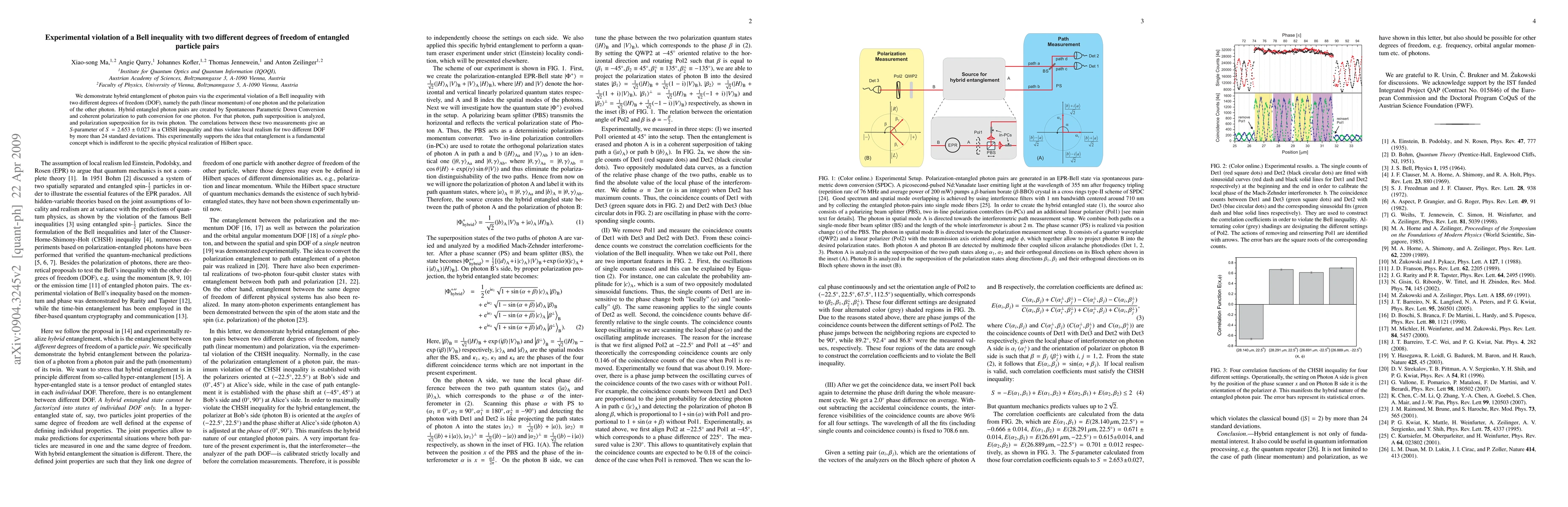 This paper demonstrates the experimental violation of a Bell inequality using hybrid entangled photon pairs, where one photon's path (linear momentum) and the other's polarization are measured. The results show a significant violation of local realism, supporting the fundamental nature of entanglement across different physical degrees of freedom.