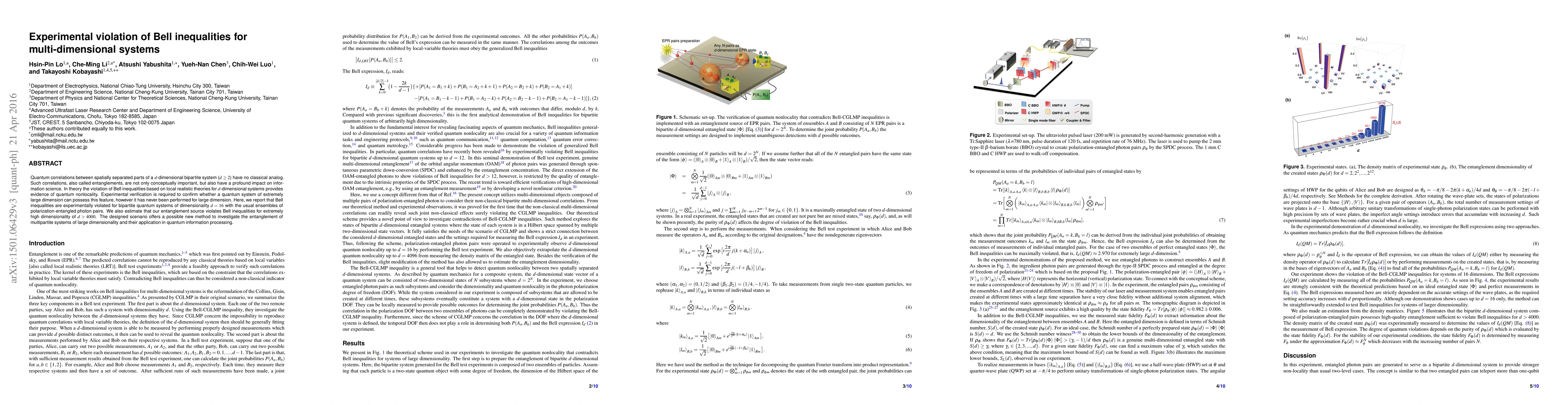 This paper reports the first experimental violation of Bell inequalities for multi-dimensional quantum systems with dimensions exceeding 4000, demonstrating quantum nonlocality in high-dimensional entanglement using polarization-entangled photon pairs. The findings suggest a new approach to studying multipartite systems and their potential applications in quantum information processing.