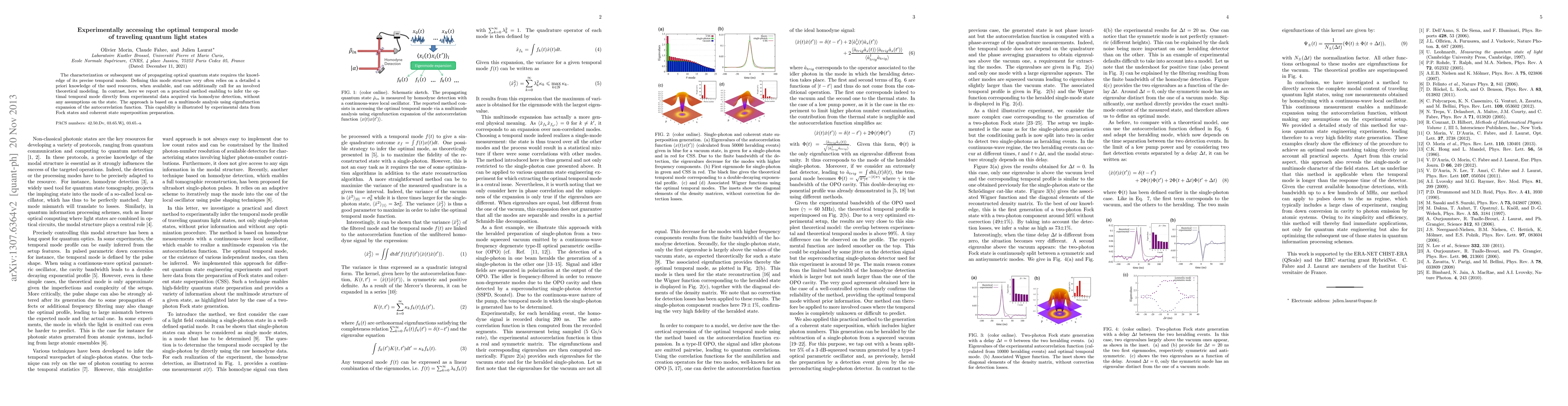 The characterization or subsequent use of propagating optical quantum state requires the knowledge of its precise temporal mode. Defining this mode structure very often relies on a detailed a priori knowledge of the used resources, when available, and can additionally call for an involved theoretical modeling. In contrast, here we investigate a practical method enabling to infer the optimal temporal mode directly from experimental data acquired via homodyne detection, without any assumptions on the state. The approach is based on a multimode analysis using eigenfunction expansion of the autocorrelation function. This capability is illustrated by experimental data from Fock states and Schrodinger cat-like state preparation.