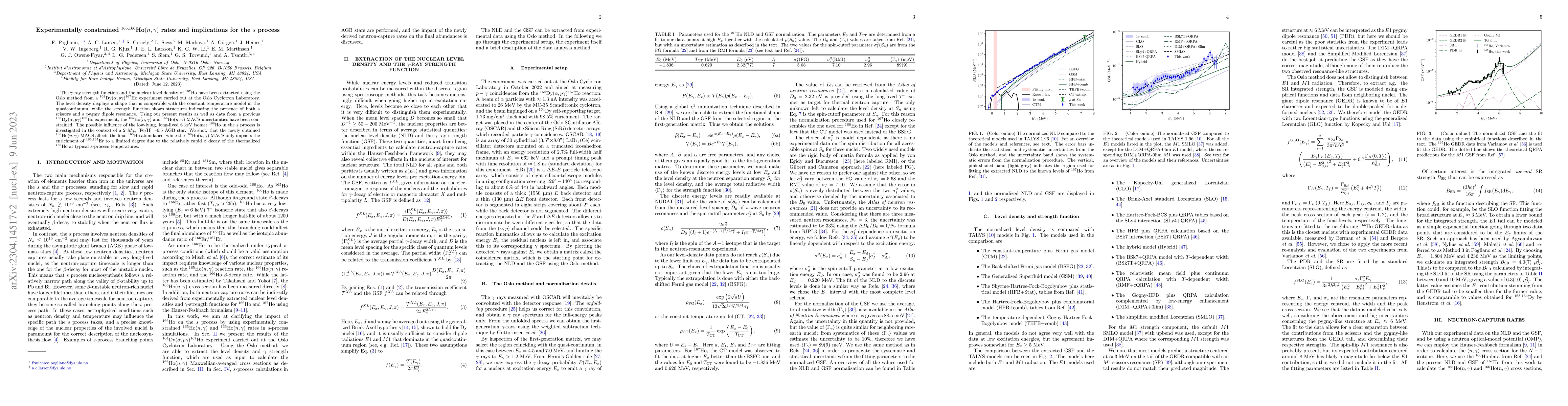 This paper experimentally determines the neutron capture rates for $^{165,166}$Ho using the Oslo method, significantly reducing uncertainties. The findings suggest that the new $^{165}$Ho capture rate impacts its final abundance, while the $^{166}$Ho rate has a minor effect on the enrichment of $^{166,167}$Er due to the isomer's rapid beta decay in the $s$ process.