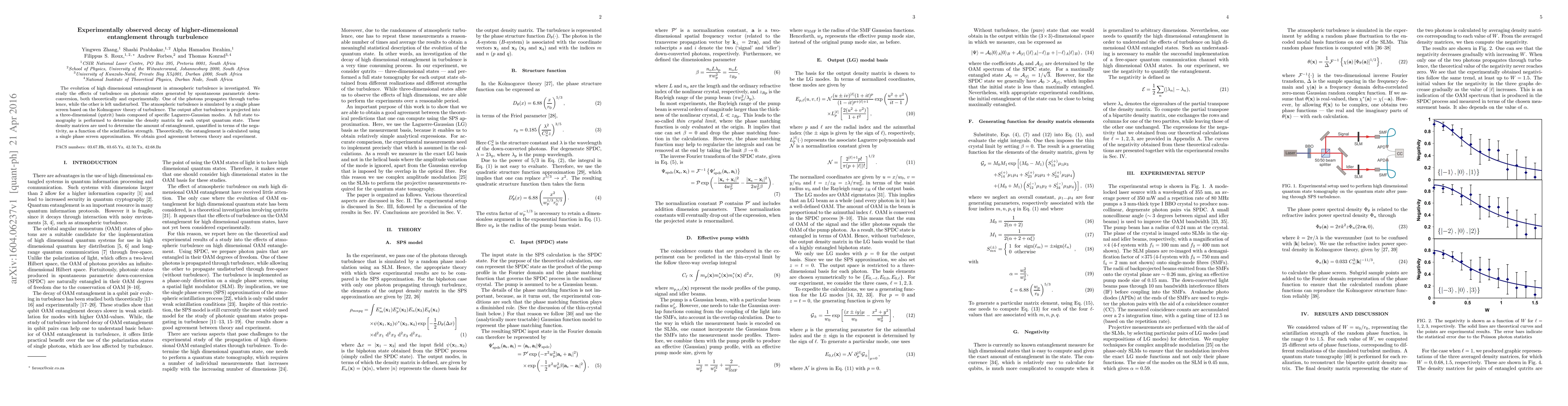 This paper investigates the decay of high-dimensional entanglement in photonic states subjected to atmospheric turbulence, both theoretically and experimentally. The results show a correlation between turbulence strength and entanglement degradation, with theoretical models matching experimental observations.