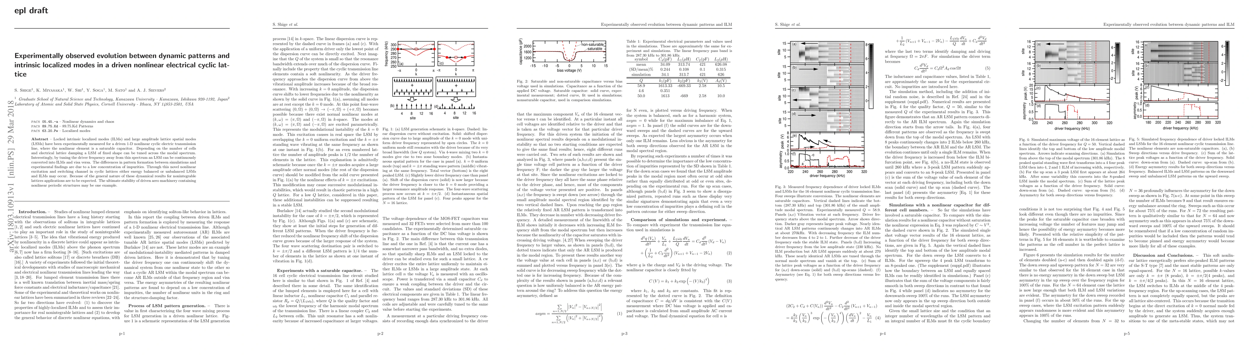 Locked intrinsic localized modes (ILMs) and large amplitude lattice spatial modes (LSMs) have been experimentally measured for a driven 1-D nonlinear cyclic electric transmission line, where the nonlinear element is a saturable capacitor. Depending on the number of cells and electrical lattice damping a LSM of fixed shape can be tuned across the modal spectrum. Interestingly, by tuning the driver frequency away from this spectrum an LSM can be continuously converted into ILMs and visa versa. The differences in pattern formation between simulations and experimental findings are due to a low concentration of impurities. Through this novel nonlinear excitation and switching channel in cyclic lattices either energy balanced or unbalanced LSMs and ILMs may occur. Because of the general nature of these dynamical results for nonintegrable lattices applications are to be expected. The ultimate stability of driven aero machinery containing nonlinear periodic structures may be one example.