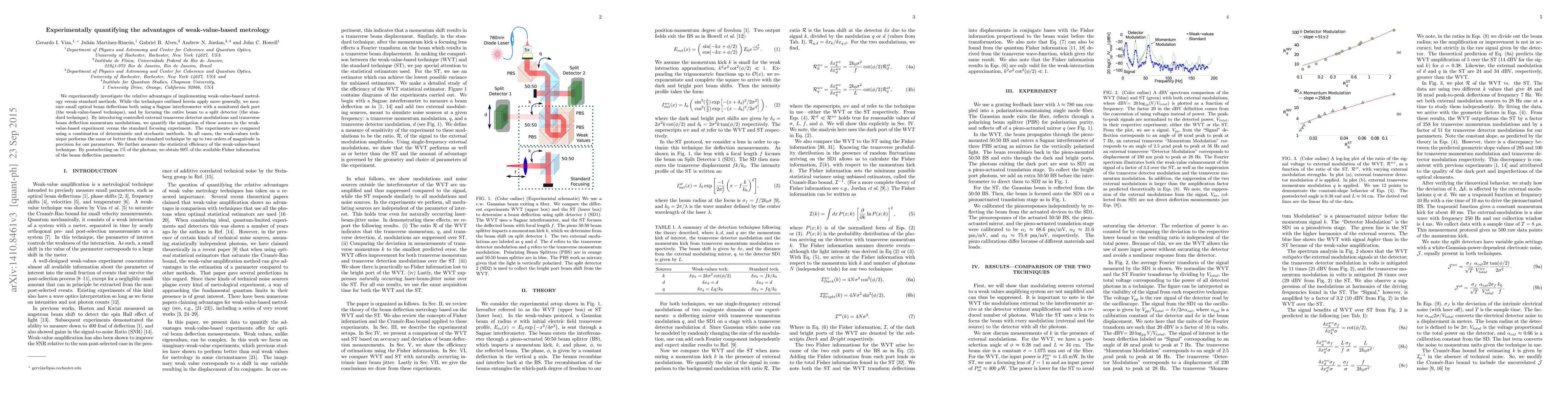 We experimentally investigate the relative advantages of implementing weak-value-based metrology versus standard methods. While the techniques outlined herein apply more generally, we measure small optical beam deflections both using a Sagnac interferometer with a monitored dark port (the weak-value-based technique), and by focusing the entire beam to a split detector (the standard technique). By introducing controlled external transverse detector modulations and transverse beam deflection momentum modulations, we quantify the mitigation of these sources in the weak-value-based experiment versus the standard focusing experiment. The experiments are compared using a combination of deterministic and stochastic methods. In all cases, the weak-values technique performs the same or better than the standard technique by up to two orders of magnitude in precision for our parameters. We further measure the statistical efficiency of the weak-values-based technique. By postselecting on $1\%$ of the photons, we obtain $99\%$ of the available Fisher information of the beam deflection parameter.