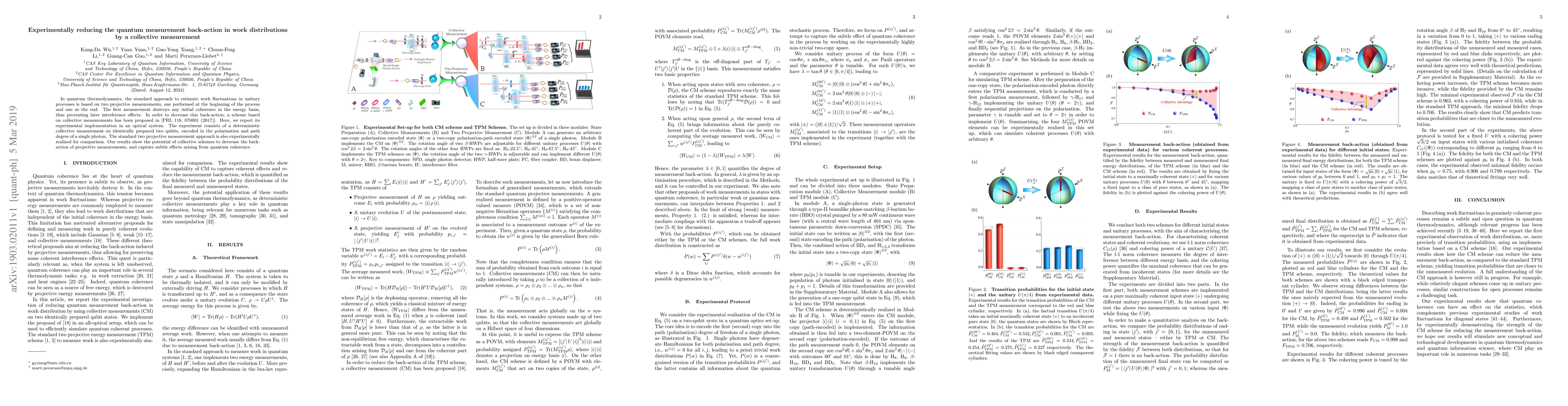 Researchers experimentally reduced the back-action of quantum measurement in work distributions using a collective measurement scheme, showing its potential to decrease destructive interference effects.
