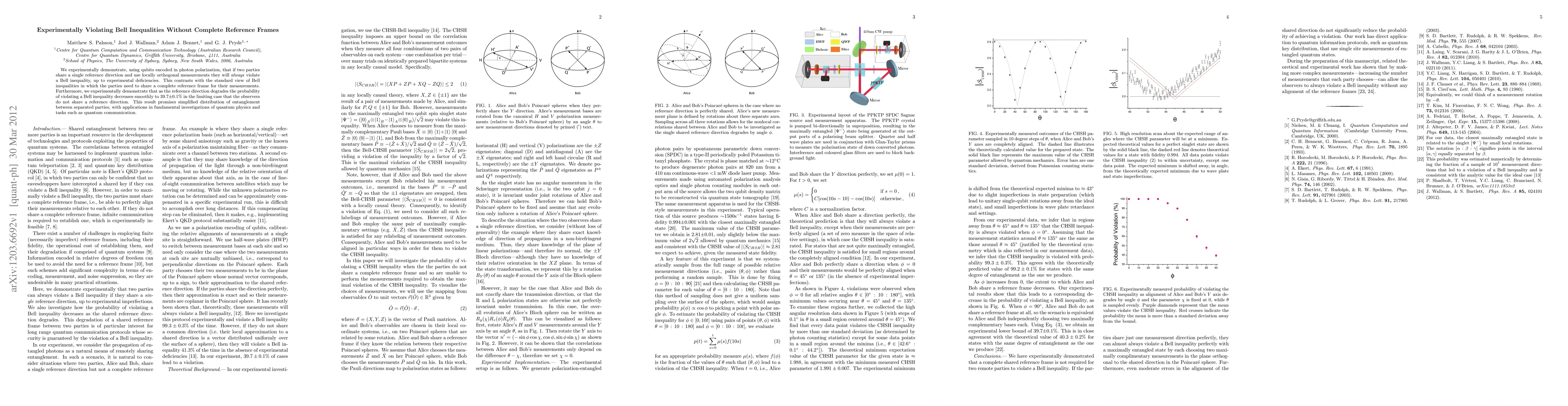 Researchers experimentally show that sharing a single reference direction allows for Bell inequality violations without complete reference frames, promising simplified entanglement distribution between separated parties.