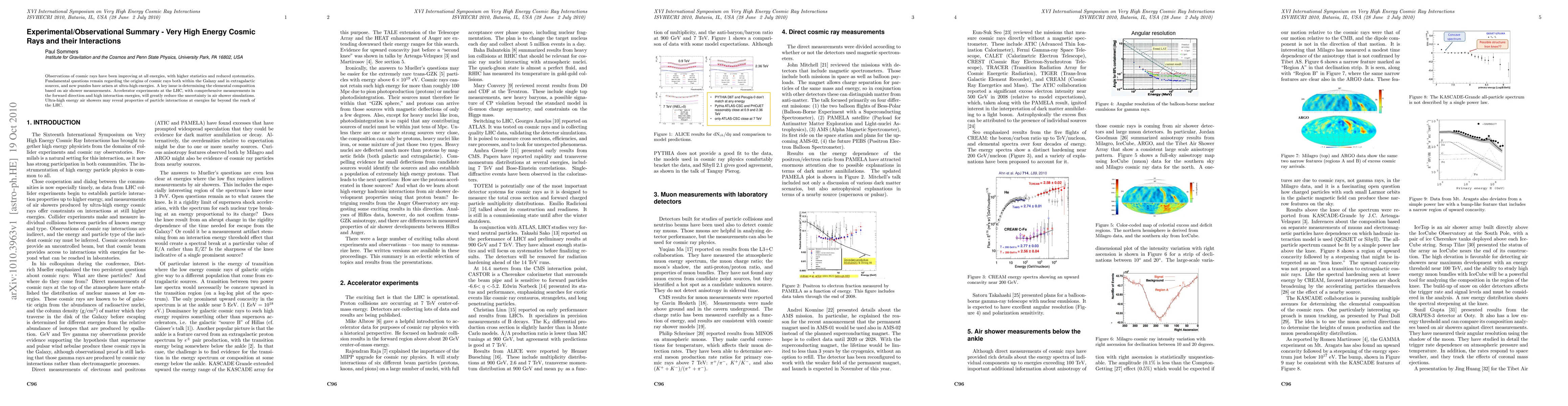 Observations of cosmic rays have been improving at all energies, with higher statistics and reduced systematics. Fundamental questions remain regarding the origins of cosmic rays both within the Galaxy and in extragalactic sources, and new puzzles have arisen at ultra-high energies. A key issue is determining the elemental composition based on air shower measurements. Accelerator experiments at the LHC, with comprehensive measurements in the forward direction and high interaction energies, will greatly reduce the uncertainty in air shower simulations. Ultra-high energy air showers may reveal properties of particle interactions at energies far beyond the reach of the LHC.