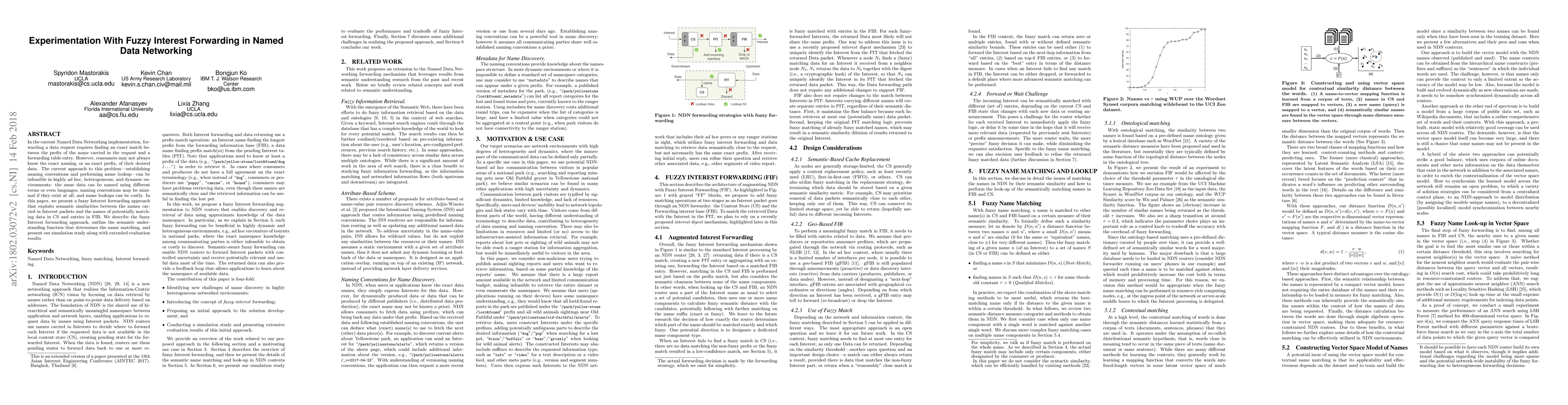 In the current Named Data Networking implementation, forwarding a data request requires finding an exact match between the prefix of the name carried in the request and a forwarding table entry. However, consumers may not always know the exact naming, or an exact prefix, of their desired data. The current approach to this problem-establishing naming conventions and performing name lookup-can be infeasible in highly ad hoc, heterogeneous, and dynamic environments: the same data can be named using different terms or even languages, naming conventions may be minimal if they exist at all, and name lookups can be costly. In this paper, we present a fuzzy Interest forwarding approach that exploits semantic similarities between the names carried in Interest packets and the names of potentially matching data in CS and entries in FIB. We describe the fuzzy Interest forwarding approach, outline the semantic understanding function that determines the name matching, and present our simulation study along with extended evaluation results.