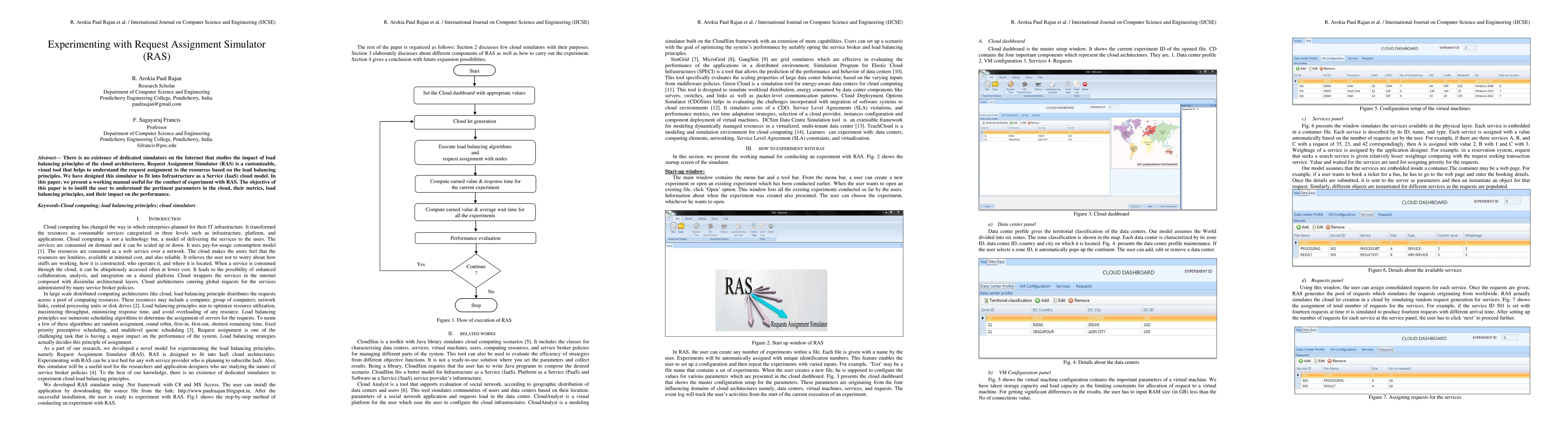 There is no existence of dedicated simulators on the Internet that studies the impact of load balancing principles of the cloud architectures. Request Assignment Simulator (RAS) is a customizable, visual tool that helps to understand the request assignment to the resources based on the load balancing principles. We have designed this simulator to fit into Infrastructure as a Service (IaaS) cloud model. In this paper, we present a working manual useful for the conduct of experiment with RAS. The objective of this paper is to instill the user to understand the pertinent parameters in the cloud, their metrics, load balancing principles, and their impact on the performance.