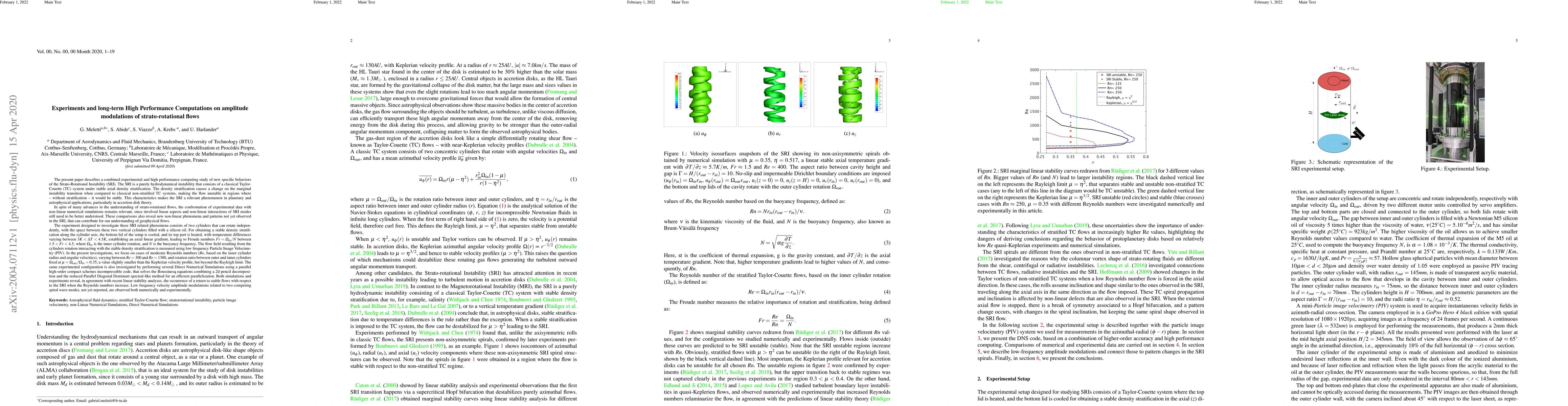 This paper combines experimental and high-performance computing to study the Strato-Rotational Instability (SRI) in astrophysical flows, revealing new non-linear phenomena through Particle Image Velocimetry and Direct Numerical Simulations in a Taylor-Couette system. Both methods show the emergence of low-frequency amplitude modulations linked to two competing spiral wave modes.