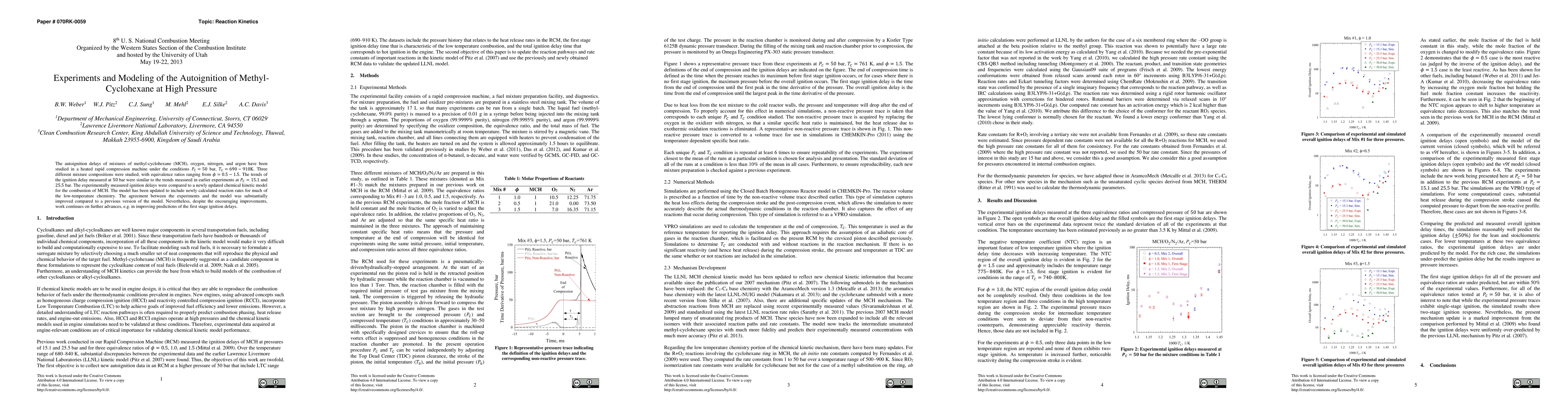 This study investigates the autoignition of methyl-cyclohexane under high pressure conditions using a rapid compression machine, comparing experimental results with an updated chemical kinetic model that shows improved agreement. Further improvements are still needed, particularly in predicting early ignition delays.
