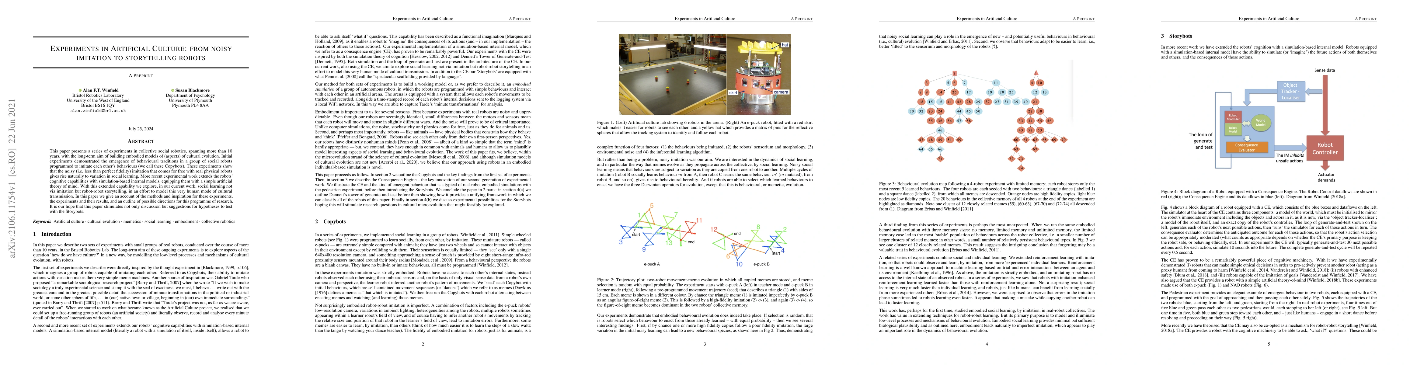 This paper presents a series of experiments in collective social robotics, spanning more than 10 years, with the long-term aim of building embodied models of (aspects) of cultural evolution. Initial experiments demonstrated the emergence of behavioural traditions in a group of social robots programmed to imitate each other's behaviours (we call these Copybots). These experiments show that the noisy (i.e. less than perfect fidelity) imitation that comes for free with real physical robots gives rise naturally to variation in social learning. More recent experimental work extends the robots' cognitive capabilities with simulation-based internal models, equipping them with a simple artificial theory of mind. With this extended capability we explore, in our current work, social learning not via imitation but robot-robot storytelling, in an effort to model this very human mode of cultural transmission. In this paper we give an account of the methods and inspiration for these experiments, the experiments and their results, and an outline of possible directions for this programme of research. It is our hope that this paper stimulates not only discussion but suggestions for hypotheses to test with the Storybots.