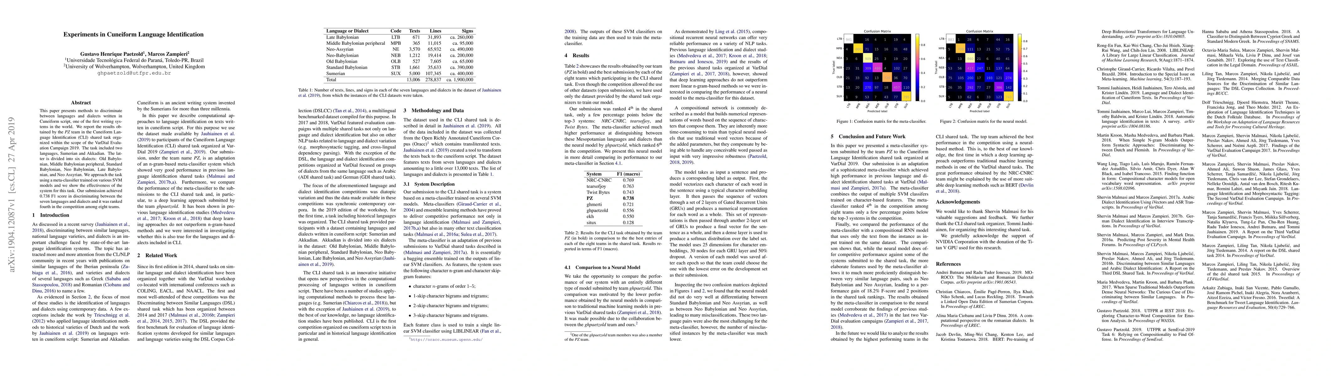 Researchers developed a system that accurately identified seven languages and dialects written in Cuneiform script, achieving a 0.738 F1 score in the VarDial Evaluation Campaign 2019 task.