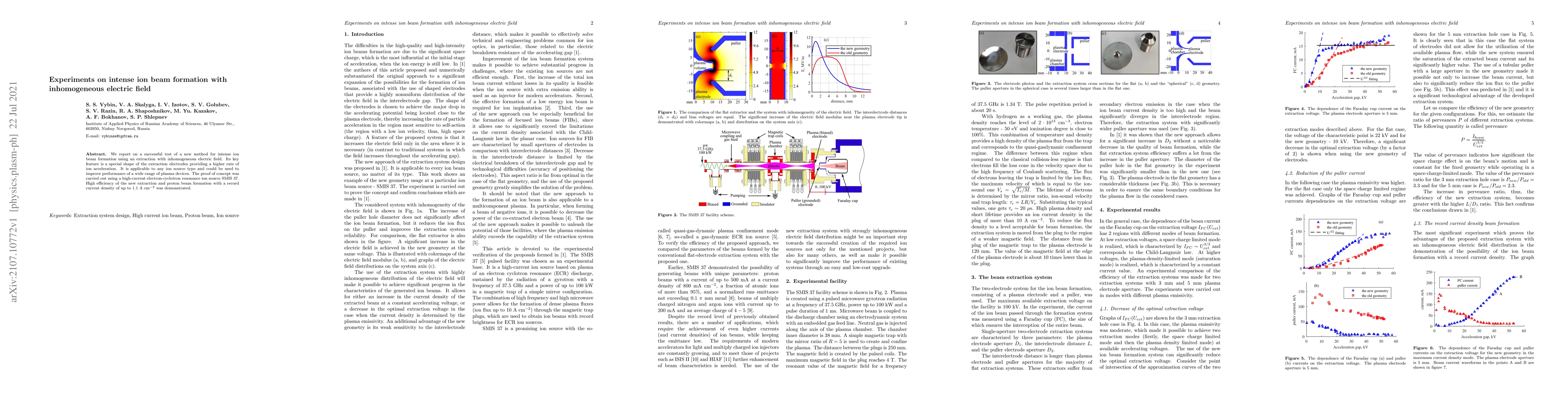 The development and experimental validation of a novel ion beam extraction system using inhomogeneous electric fields, which significantly increases beam current density and reduces optimal extraction voltage.