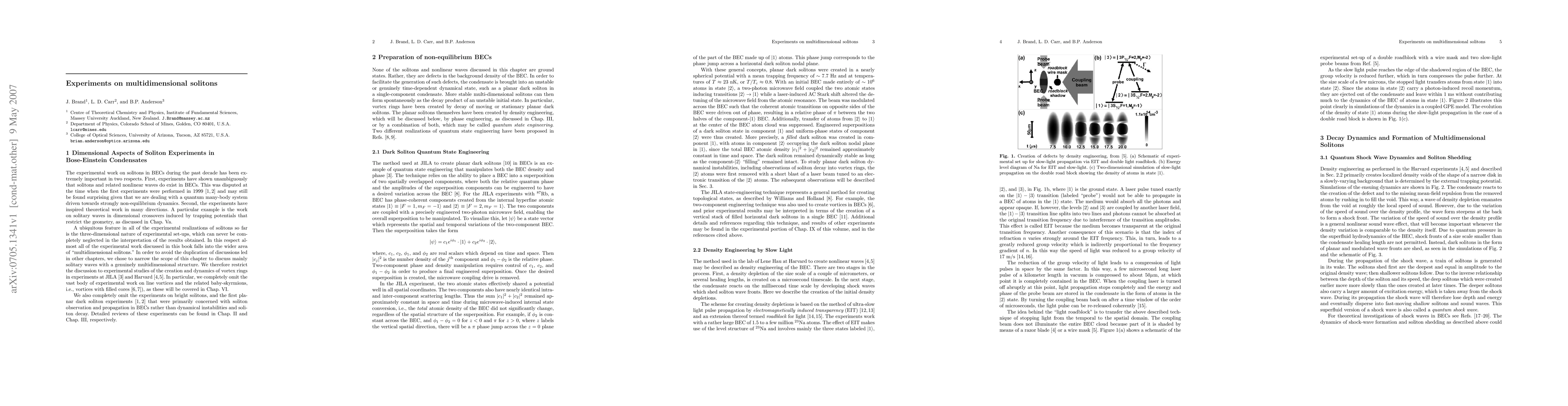 Researchers experimentally created multidimensional solitons in Bose-Einstein condensates, observing phenomena like planar soliton fronts and vortex rings.