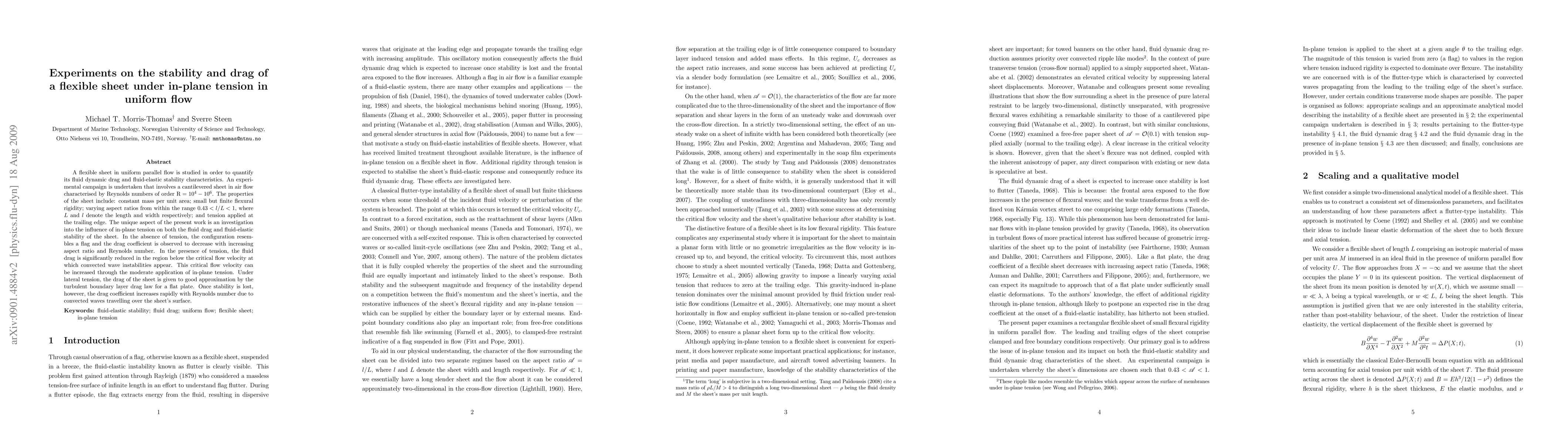 A flexible sheet in uniform parallel flow is studied in order to quantify its