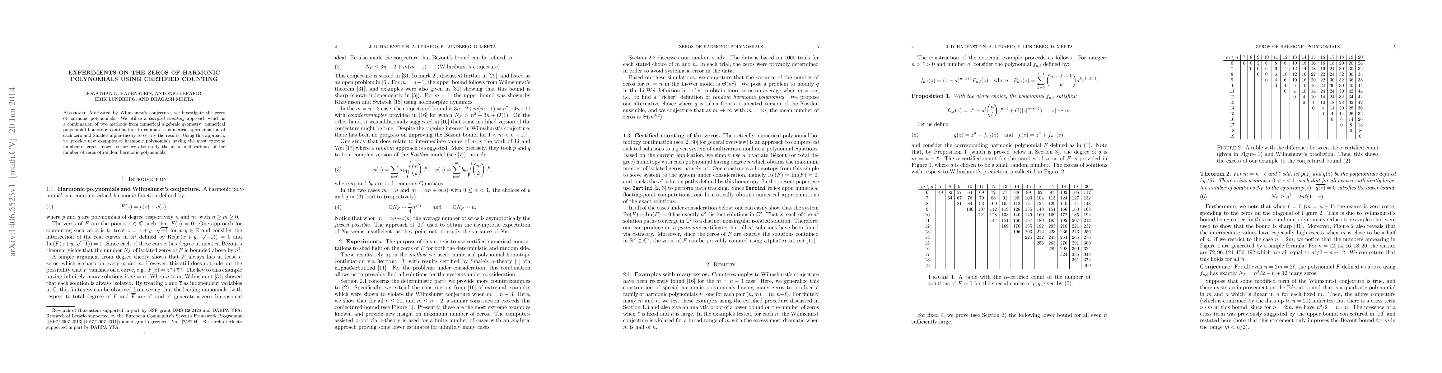 Summary: This research explores the zeros of harmonic polynomials using a certified counting method, combining numerical homotopy continuation and Smale's alpha-theory to provide the most extreme known examples and analyze the statistical properties of zeros in random harmonic polynomials.