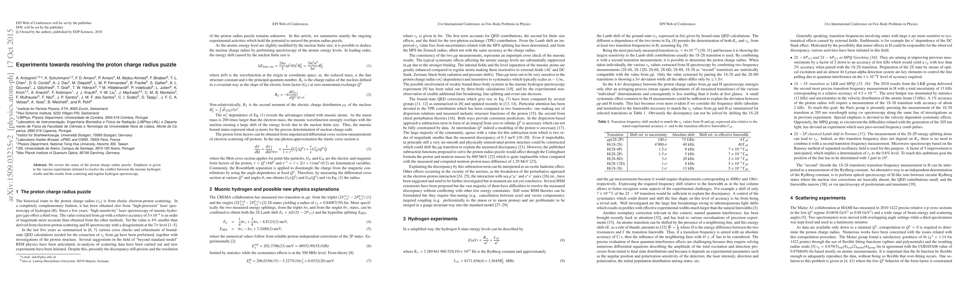 This paper reviews efforts to resolve the proton charge radius puzzle, focusing on experiments comparing muonic hydrogen results with those from scattering and regular hydrogen spectroscopy to address discrepancies.