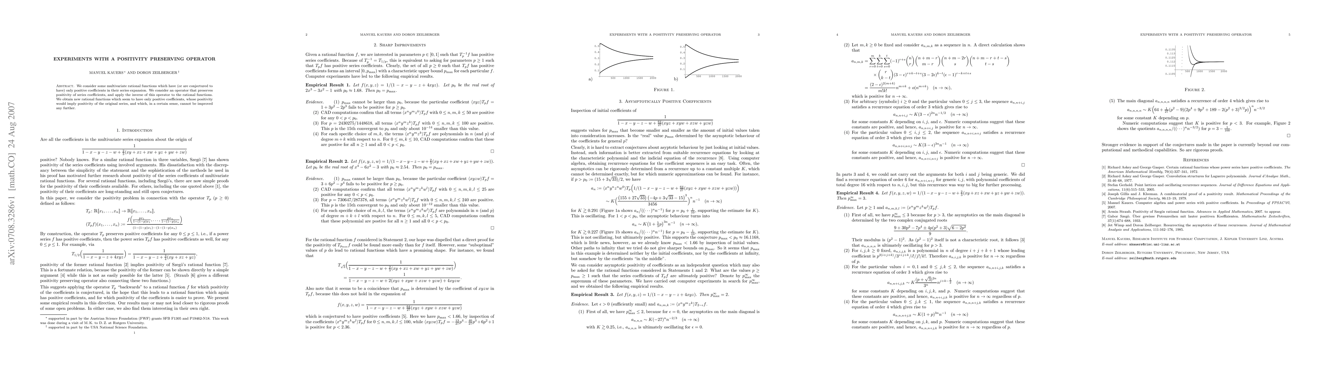 This paper explores multivariate rational functions with positive coefficients, introducing a positivity-preserving operator. By applying the inverse of this operator, it generates new rational functions that also appear to have exclusively positive coefficients, potentially confirming the positivity of the original series.