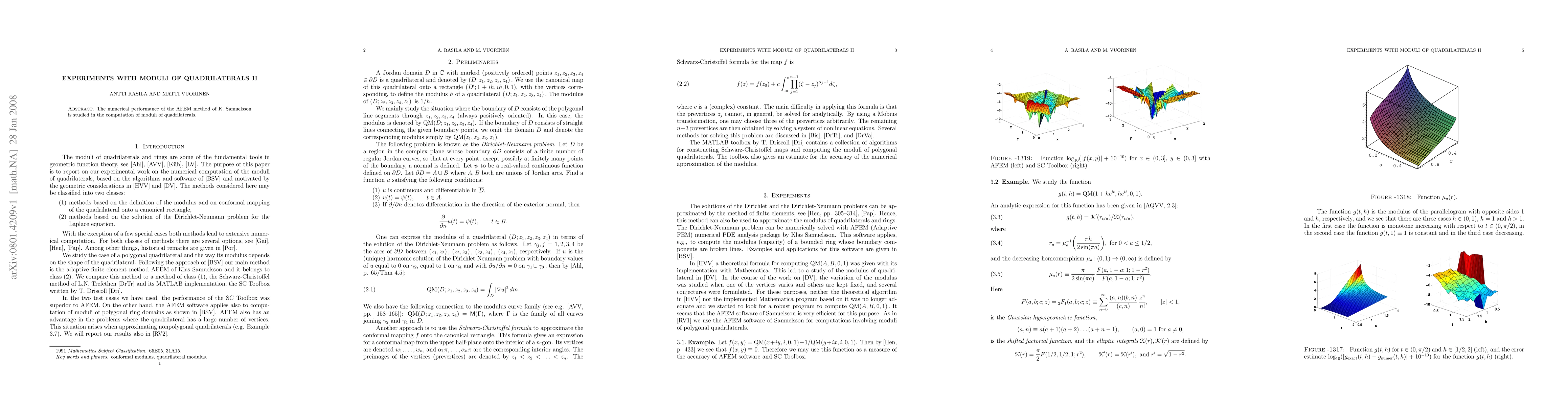 Summary: This paper investigates the efficiency of the Adaptive Finite Element Method (AFEM) developed by K. Samuelsson for calculating the moduli of quadrilaterals, focusing on its numerical performance and accuracy.