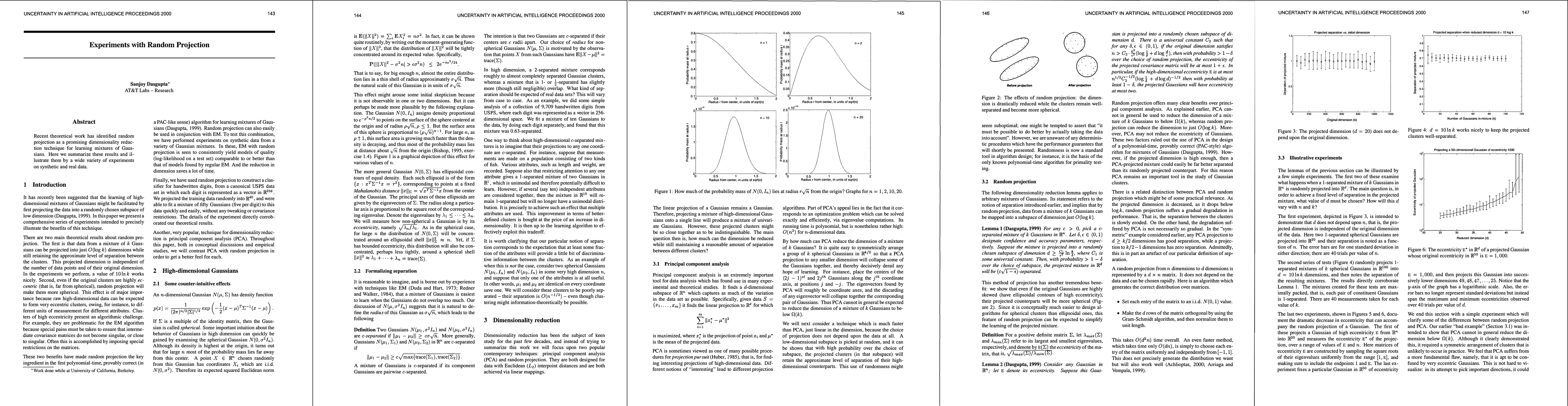 This paper summarizes recent theory on using random projection for reducing dimensions in learning Gaussian mixtures, supported by experiments on synthetic and real data.