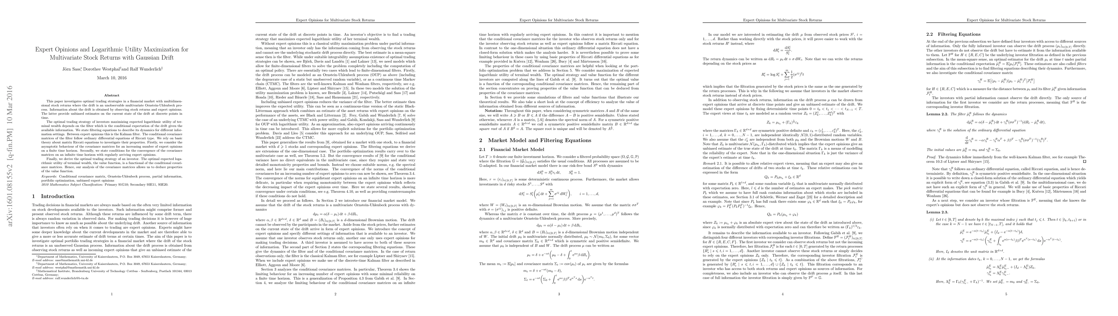 This paper analyzes optimal trading strategies in financial markets with multivariate stock returns and expert opinions on unobservable drifts, using logarithmic utility maximization and Kalman filter equations to derive properties of the value function.