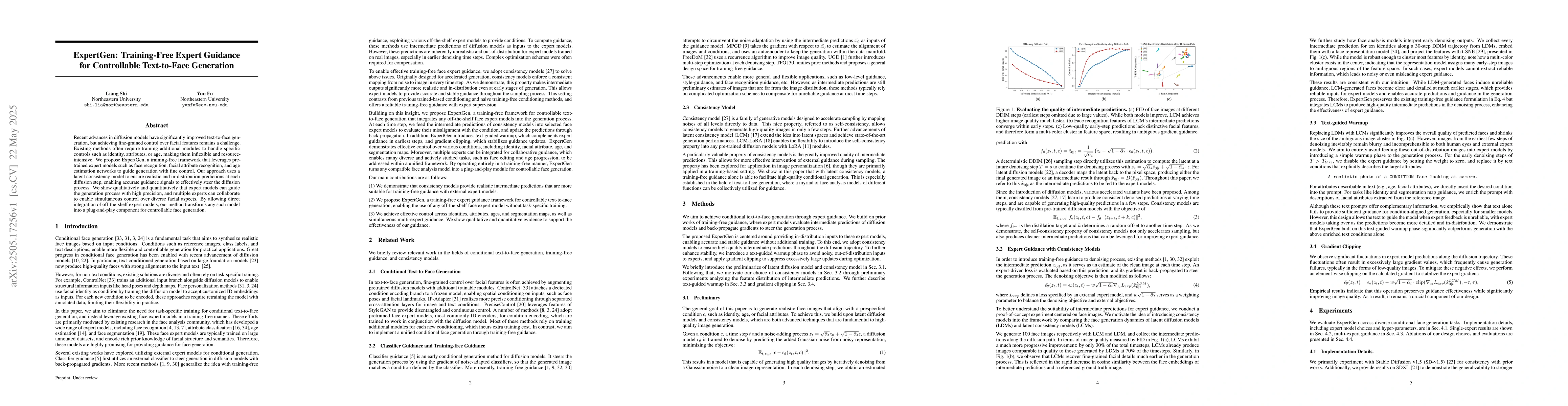 ExpertGen combines consistency models and carefully designed complementary modules to provide detailed, in-distribution predictions to expert models, enabling effective and accurate guidance for text-to-face generation.