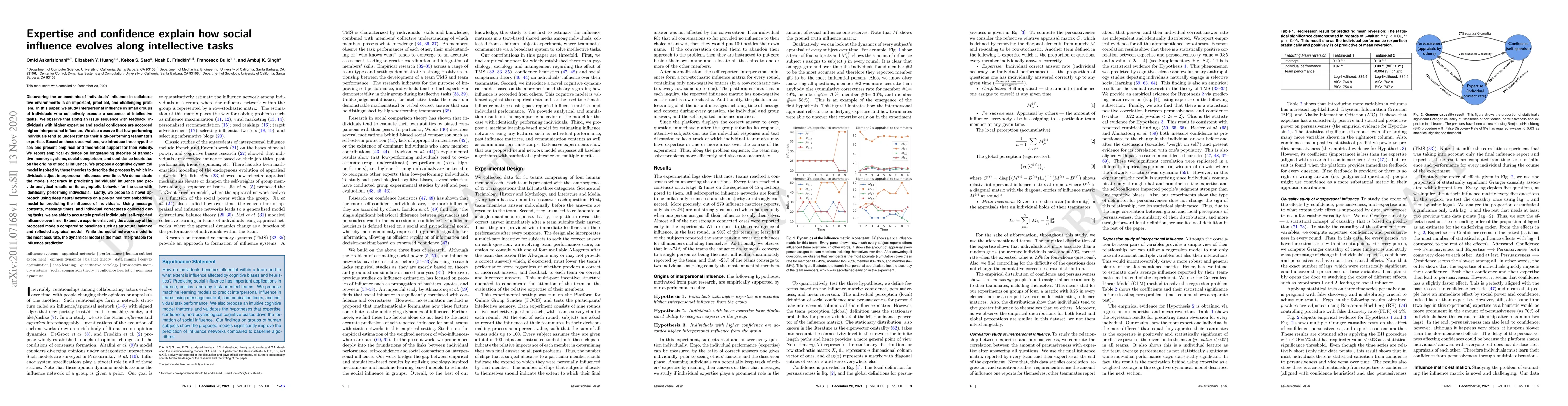 This paper investigates how expertise and confidence influence social dynamics in small groups performing intellective tasks. It finds that higher expertise and social confidence correlate with increased interpersonal influence, while low performers often underestimate high performers' expertise. The study proposes a cognitive dynamical model and a deep neural network approach to predict influence, with the neural network model proving most accurate and the dynamical model offering the most interpretability.