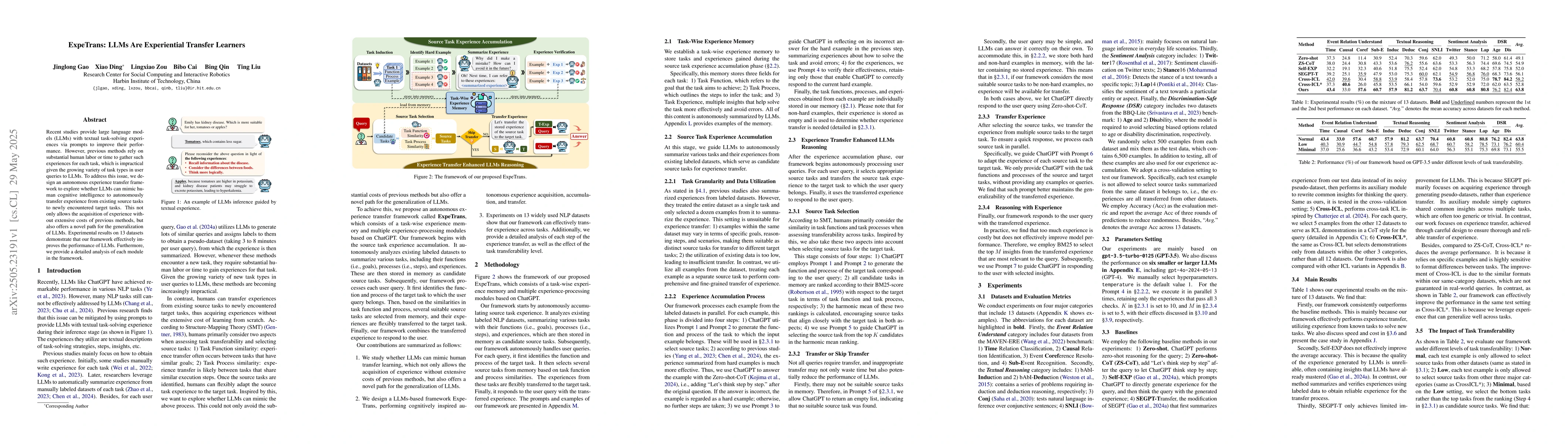 The research introduces an autonomous experience transfer framework for large language models (LLMs) to transfer experience from source tasks to target tasks, aiming to improve performance without extensive human labor.