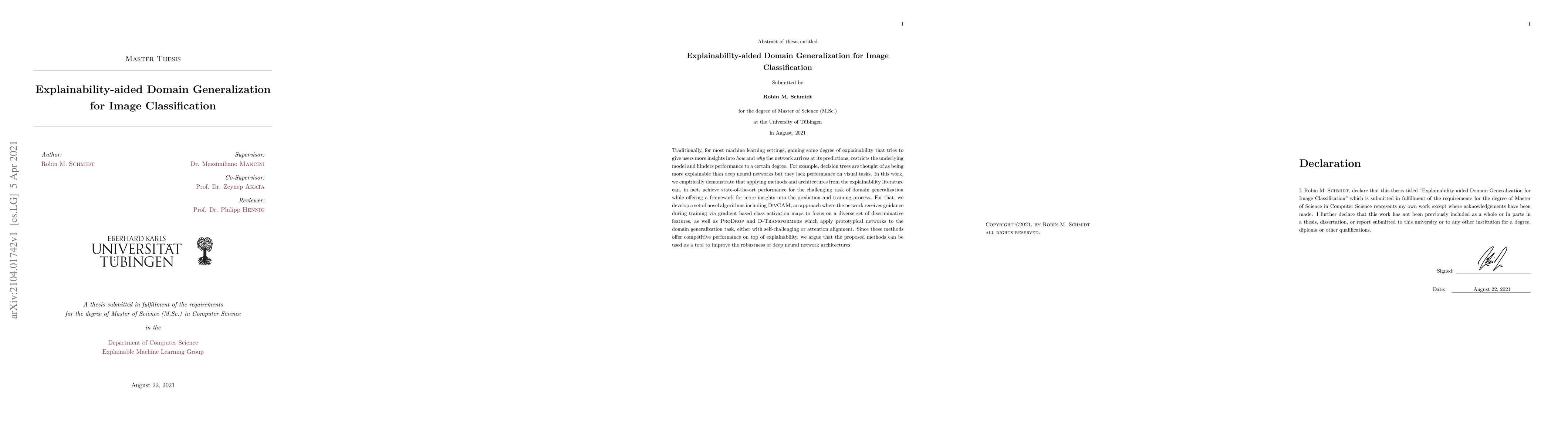 New methods combine explainability techniques with domain generalization for image classification, achieving state-of-the-art performance while providing insights into model predictions and training processes.