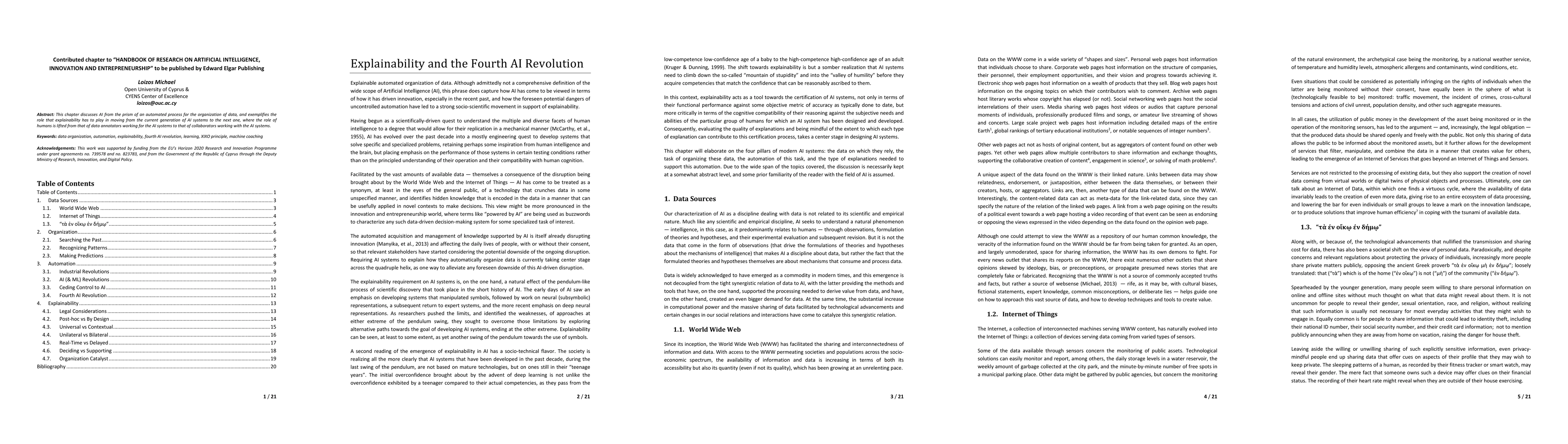 This chapter discusses AI from the prism of an automated process for the organization of data, and exemplifies the role that explainability has to play in moving from the current generation of AI systems to the next one, where the role of humans is lifted from that of data annotators working for the AI systems to that of collaborators working with the AI systems.