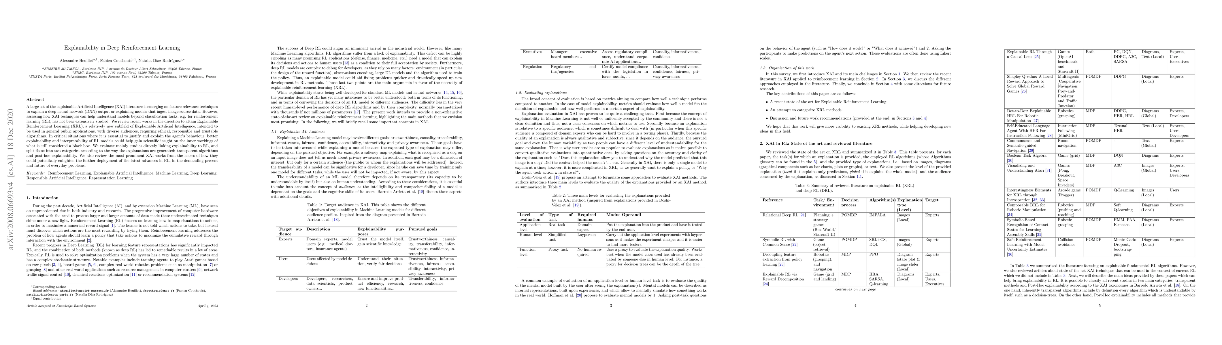 This paper reviews recent advancements in Explainable Reinforcement Learning (XRL), focusing on techniques that enhance the interpretability of RL models beyond classification tasks. It categorizes explainability methods into transparent algorithms and post-hoc approaches, aiming to improve trust and ethical deployment of RL in public applications.