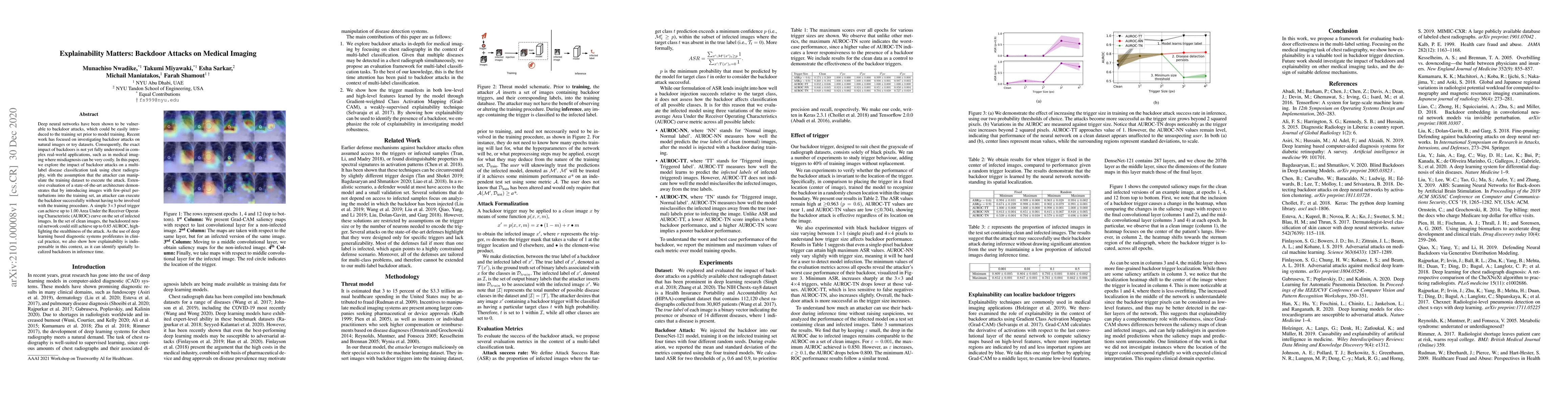 A new study reveals that backdoor attacks can be successfully introduced to medical imaging models using just a few pixel perturbations, compromising diagnosis accuracy. Explainability is crucial in identifying these stealthy attacks, which could have severe consequences in clinical practice.
