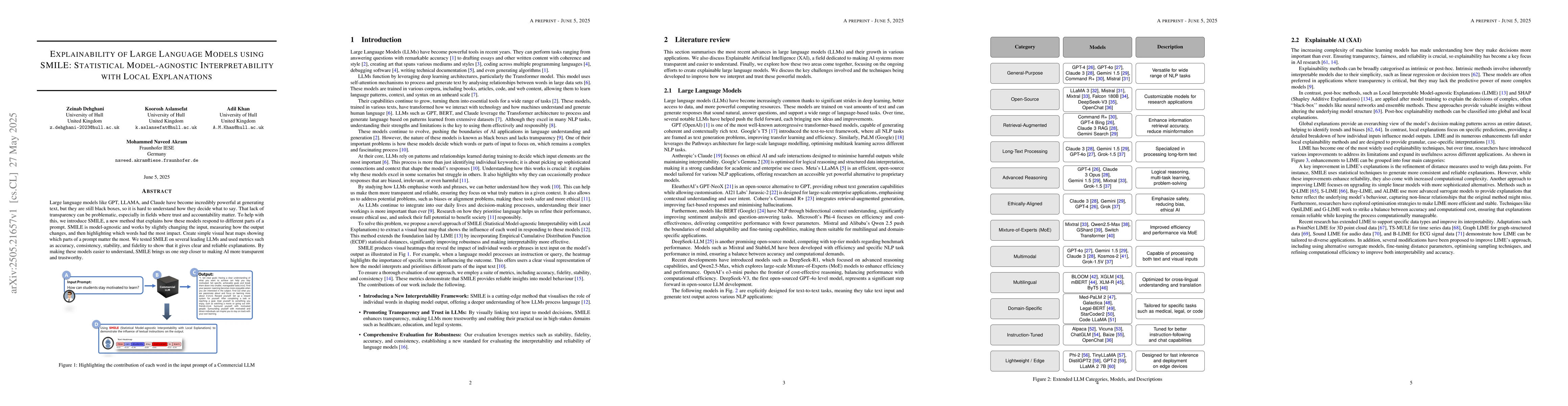 SMILE, a novel model-agnostic interpretability method for large language models, offering local explanations through statistical analysis of input perturbations.