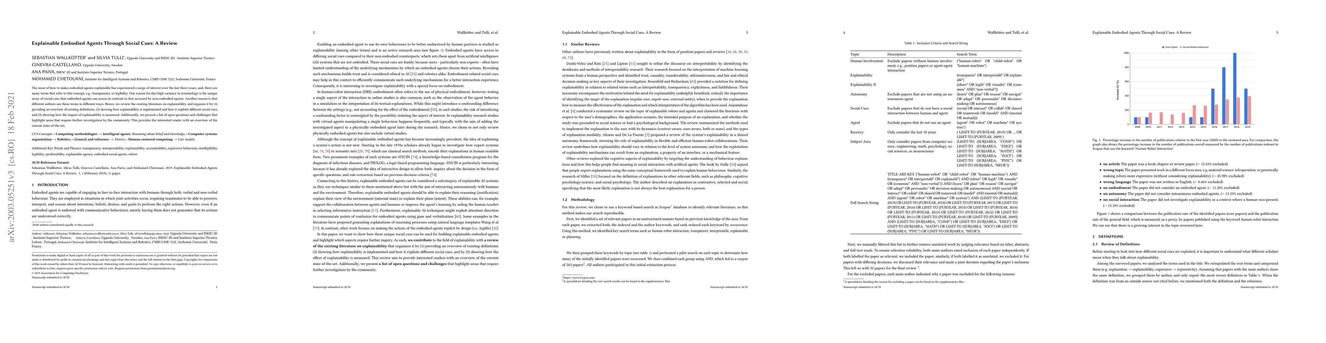 This paper reviews literature on explainability in embodied agents, focusing on how social cues enhance transparency and legibility. It categorizes definitions, implementation methods, and measurement impacts, while also identifying open questions and challenges for future research.