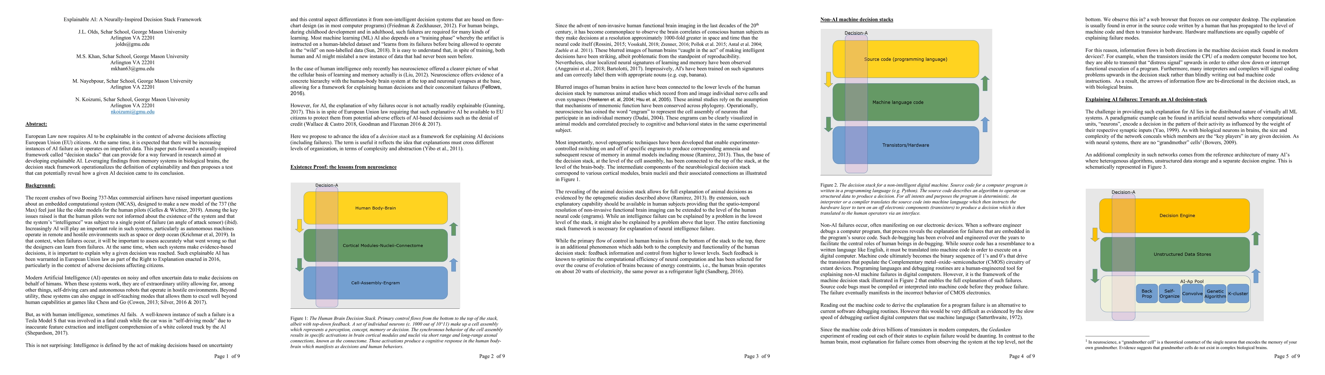 European Law now requires AI to be explainable in the context of adverse decisions affecting European Union (EU) citizens. At the same time, it is expected that there will be increasing instances of AI failure as it operates on imperfect data. This paper puts forward a neurally-inspired framework called decision stacks that can provide for a way forward in research aimed at developing explainable AI. Leveraging findings from memory systems in biological brains, the decision stack framework operationalizes the definition of explainability and then proposes a test that can potentially reveal how a given AI decision came to its conclusion.