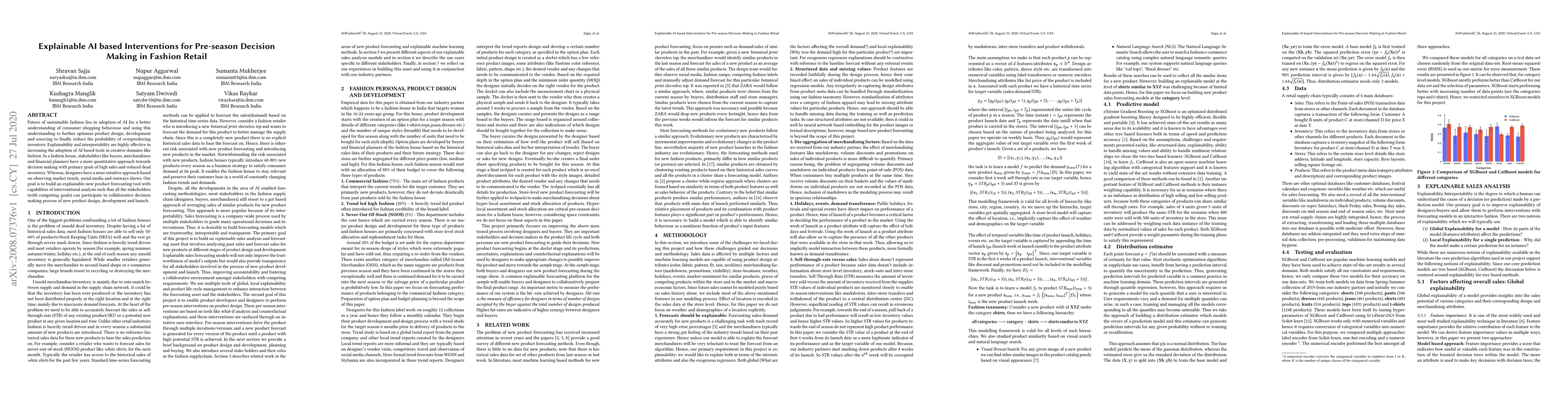 Future of sustainable fashion lies in adoption of AI for a better understanding of consumer shopping behaviour and using this understanding to further optimize product design, development and sourcing to finally reduce the probability of overproducing inventory. Explainability and interpretability are highly effective in increasing the adoption of AI based tools in creative domains like fashion. In a fashion house, stakeholders like buyers, merchandisers and financial planners have a more quantitative approach towards decision making with primary goals of high sales and reduced dead inventory. Whereas, designers have a more intuitive approach based on observing market trends, social media and runways shows. Our goal is to build an explainable new product forecasting tool with capabilities of interventional analysis such that all the stakeholders (with competing goals) can participate in collaborative decision making process of new product design, development and launch.