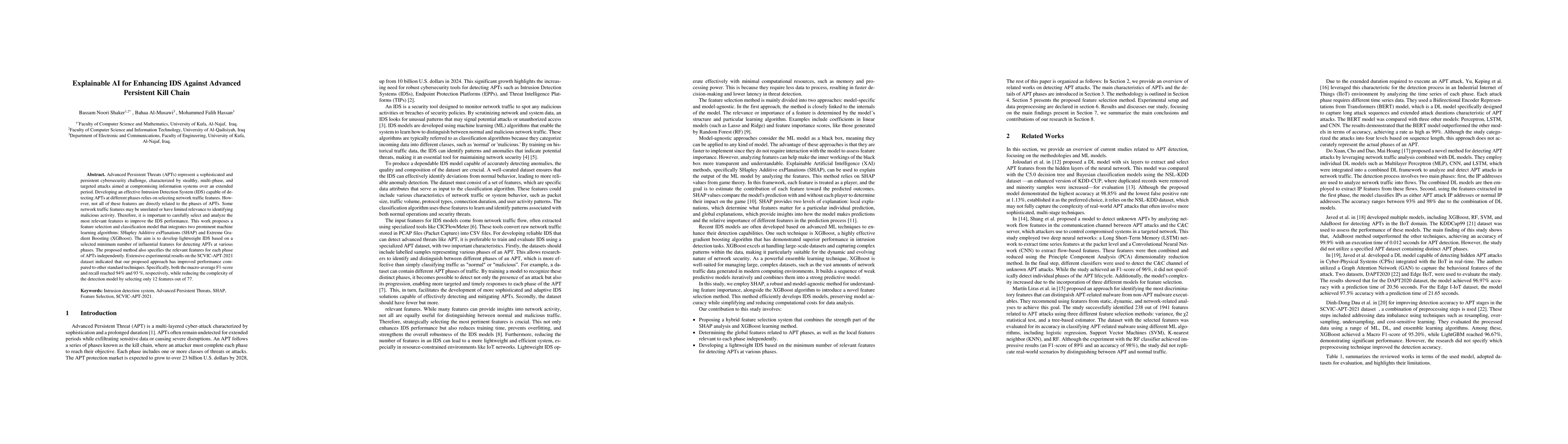A new approach to detecting Advanced Persistent Threats (APTs) using Explainable AI and machine learning improves performance by selecting only 12 features out of 77, achieving macro-average F1-score of 94% and recall of 93%.