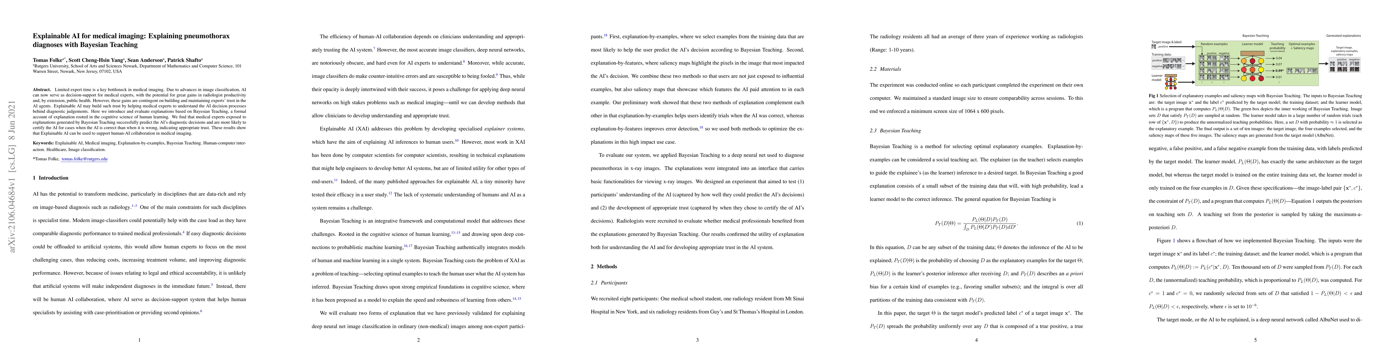 This paper explores the use of Bayesian Teaching to generate explanations for AI-based pneumothorax diagnoses in medical imaging, aiming to build radiologists' trust in AI decision-support systems. The study finds that explanations based on Bayesian Teaching help medical experts accurately predict AI decisions and appropriately certify AI correctness, demonstrating the potential of Explainable AI to enhance human-AI collaboration.